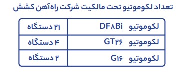 - تعمیر و نگهداری و بهره برداری انواع لکوموتیو های باری، مسافری و مانوری